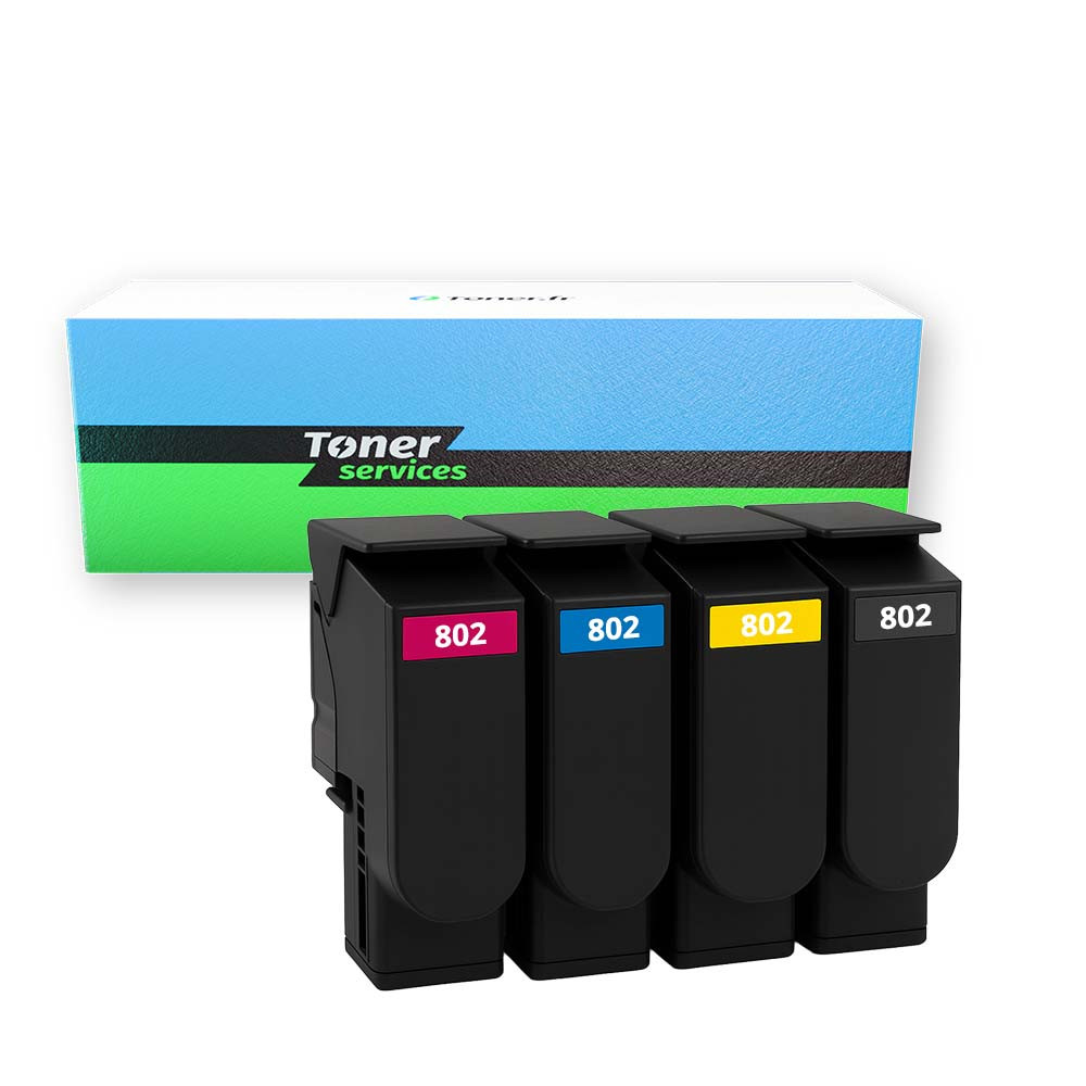 Pack de 4 toners compatible Lexmark 802 Noir et couleurs