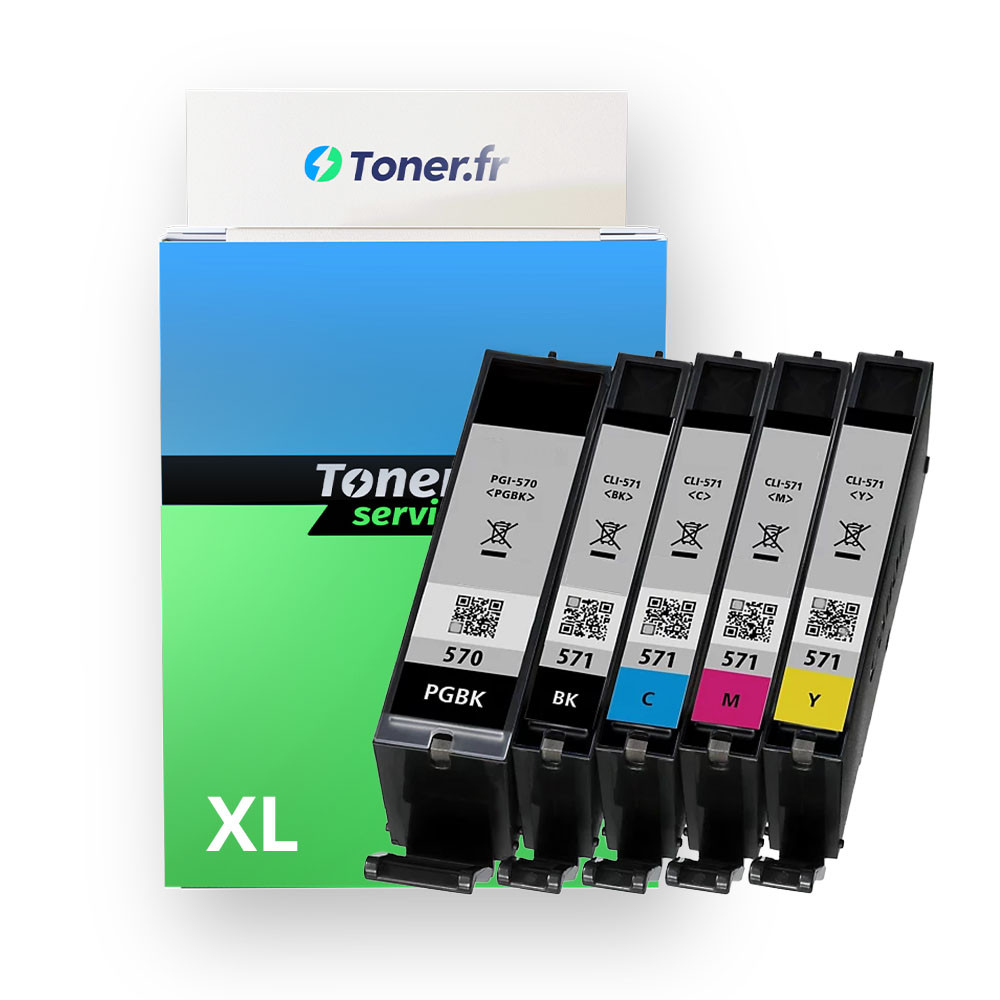 Pack de 5 cartouches d'encre compatibles Canon CLI571 XL Noir et couleurs